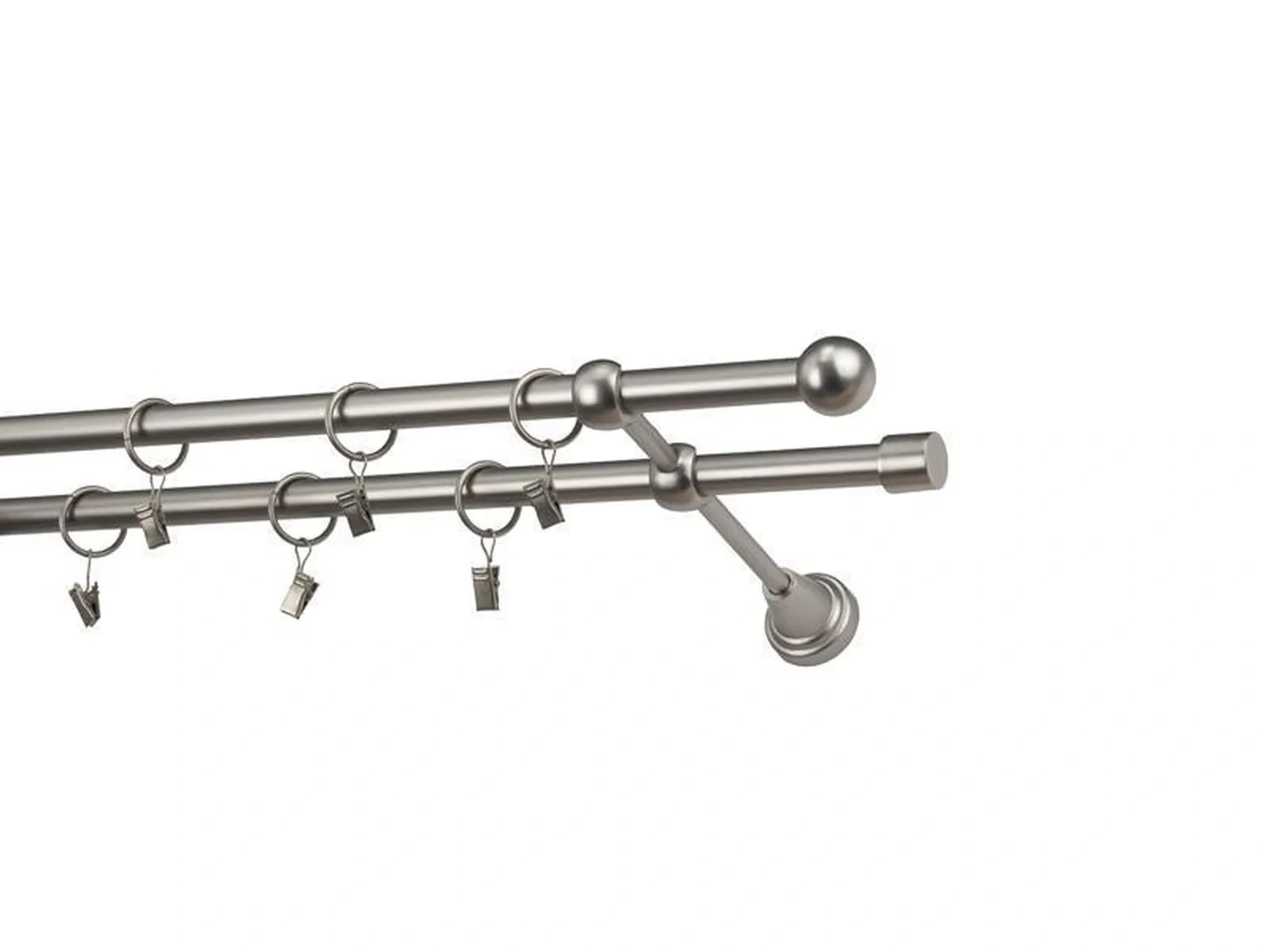 Dvojradová garniža s povrchovou úpravou - odtieň satin-nikel (matné striebro). Celokovové garniže s kvalitnou povrchovou úpravou - galvanické pokovovanie. Galvanické pokovovanie zabezpečuje vyššiu povrchovú tvrdosť, zvýšenú dolnosť voči poškriabaniu, hladký povrch. Dodávané sú v kompletoch.