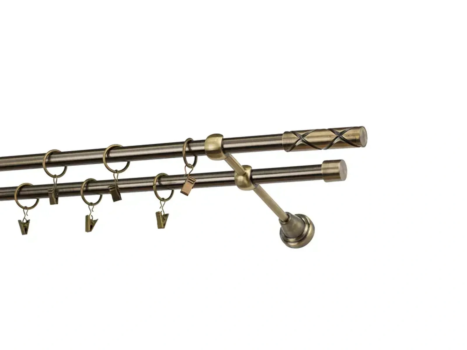 Dvojradová garniža s povrchovou úpravou - odtieň antik (matné zlato). Celokovové garniže s kvalitnou povrchovou úpravou - galvanické pokovovanie. Galvanické pokovovanie zabezpečuje vyššiu povrchovú tvrdosť, zvýšenú dolnosť voči poškriabaniu, hladký povrch. Dodávané sú v kompletoch.