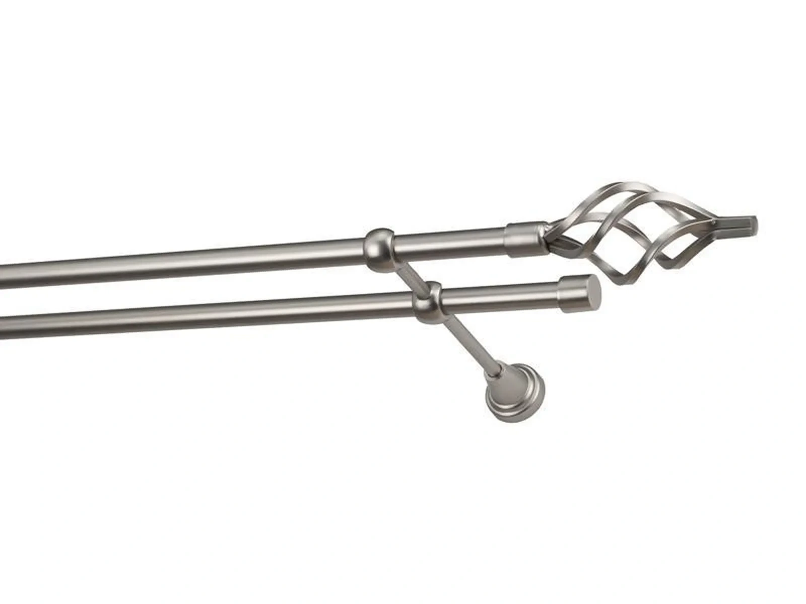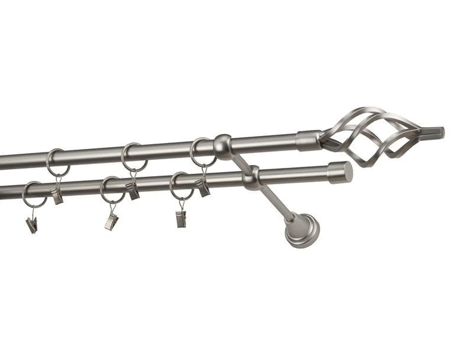 Dvojradová garniža s povrchovou úpravou - odtieň satin-nikel (matné striebro). Celokovové garniže s kvalitnou povrchovou úpravou - galvanické pokovovanie. Galvanické pokovovanie zabezpečuje vyššiu povrchovú tvrdosť, zvýšenú dolnosť voči poškriabaniu, hladký povrch. Dodávané sú v kompletoch.