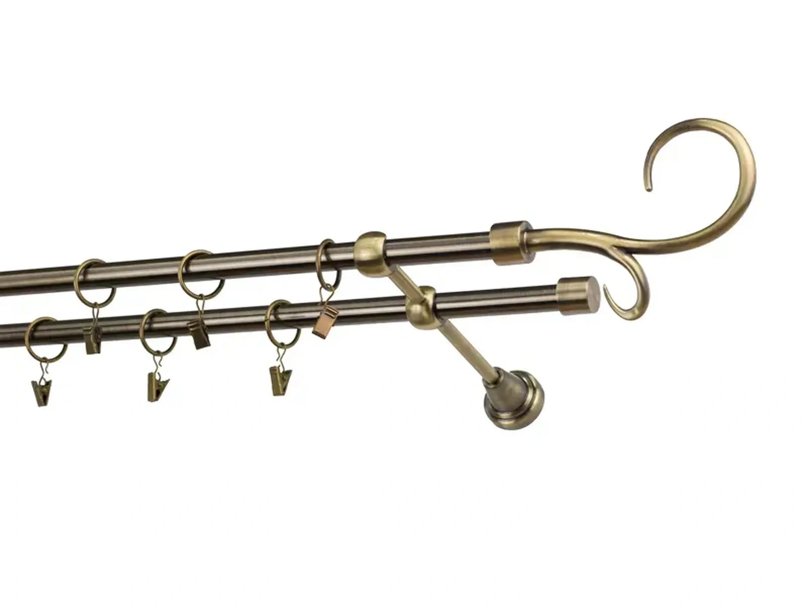 Dvojradová garniža s povrchovou úpravou - odtieň antik (matné zlato). Celokovové garniže s kvalitnou povrchovou úpravou - galvanické pokovovanie. Galvanické pokovovanie zabezpečuje vyššiu povrchovú tvrdosť, zvýšenú dolnosť voči poškriabaniu, hladký povrch. Dodávané sú v kompletoch.