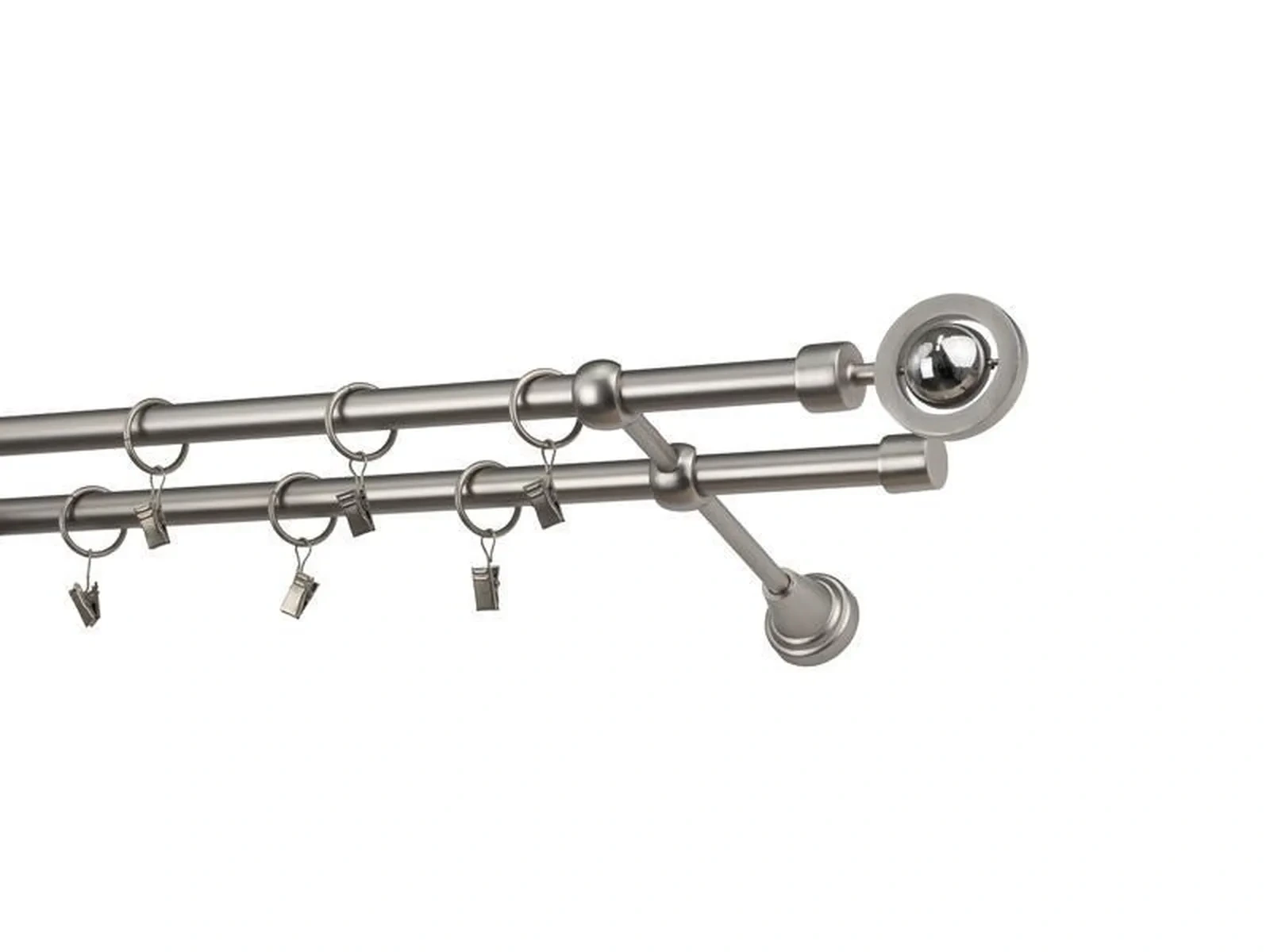 Dvojradová garniža s povrchovou úpravou - odtieň satin-nikel (matné striebro). Celokovové garniže s kvalitnou povrchovou úpravou - galvanické pokovovanie. Galvanické pokovovanie zabezpečuje vyššiu povrchovú tvrdosť, zvýšenú dolnosť voči poškriabaniu, hladký povrch. Dodávané sú v kompletoch.