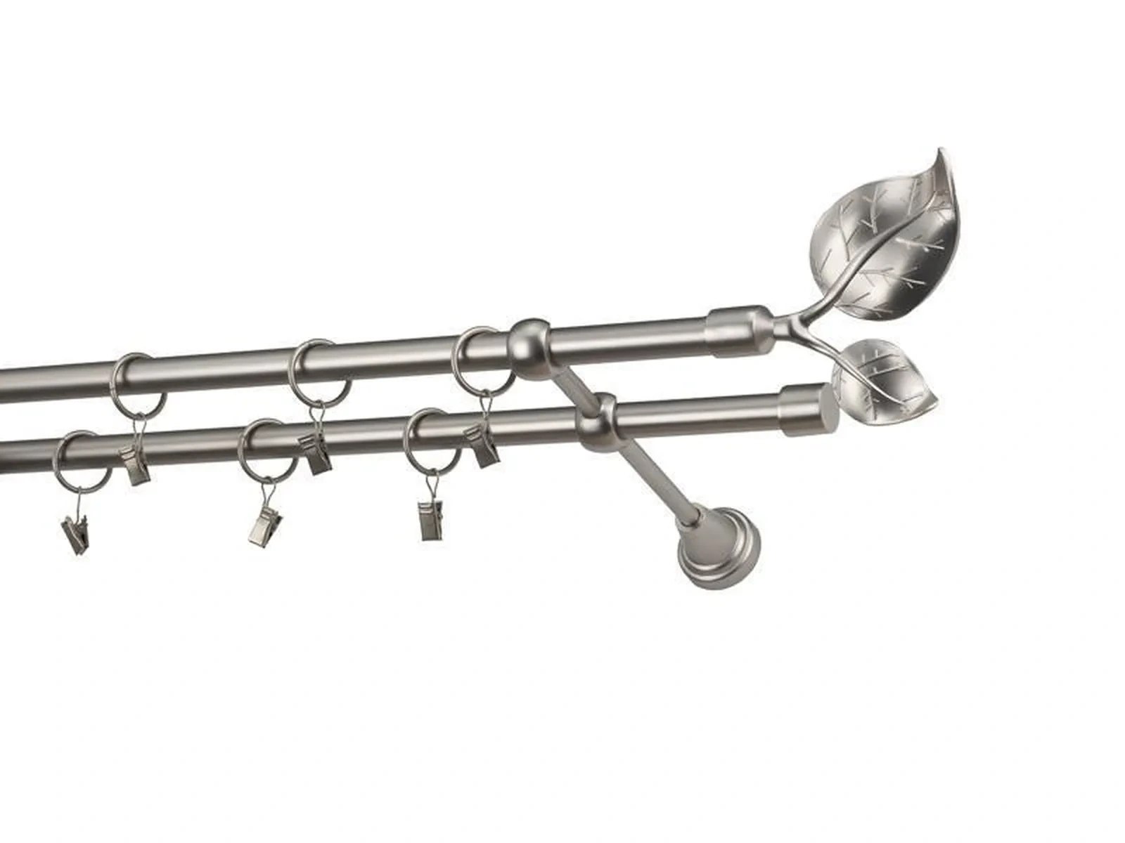 Dvojradová garniža s povrchovou úpravou - odtieň satin-nikel (matné striebro). Celokovové garniže s kvalitnou povrchovou úpravou - galvanické pokovovanie. Galvanické pokovovanie zabezpečuje vyššiu povrchovú tvrdosť, zvýšenú dolnosť voči poškriabaniu, hladký povrch. Dodávané sú v kompletoch.