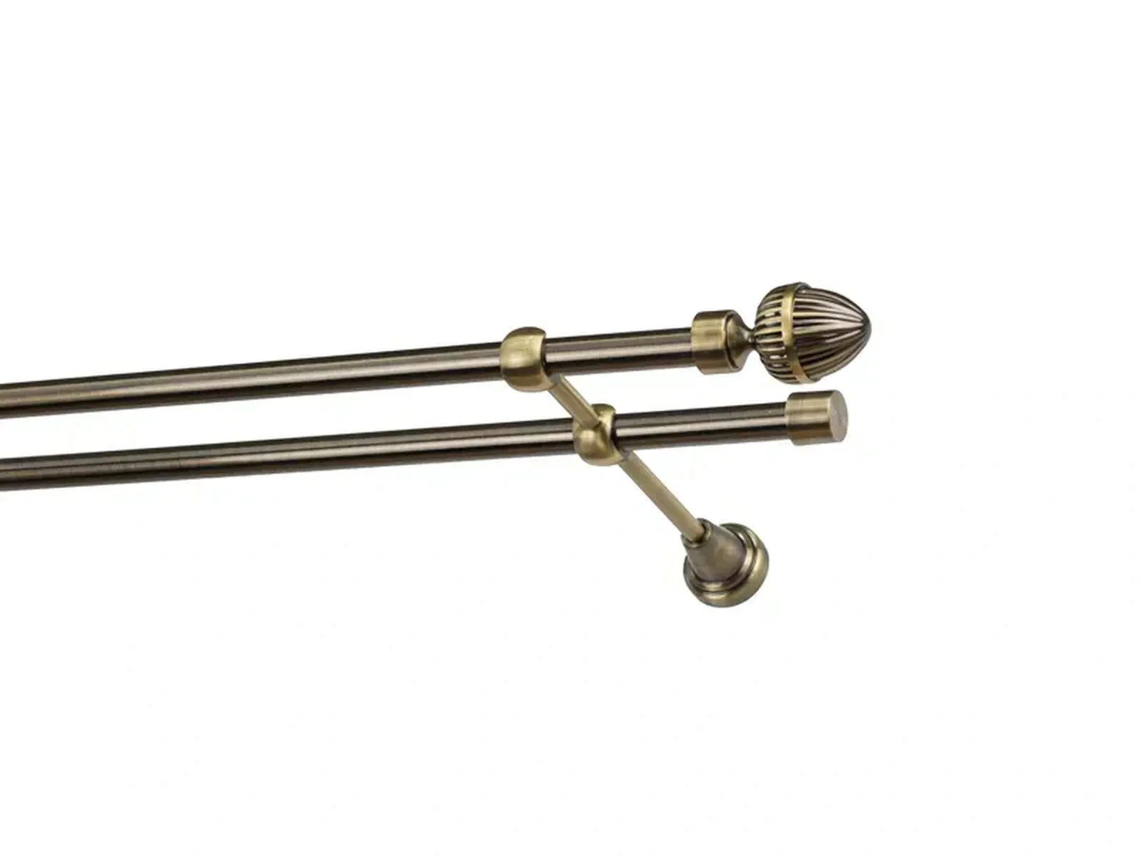 Dvojradová garniža s povrchovou úpravou - odtieň antik (matné zlato). Celokovové garniže s kvalitnou povrchovou úpravou - galvanické pokovovanie. Galvanické pokovovanie zabezpečuje vyššiu povrchovú tvrdosť, zvýšenú dolnosť voči poškriabaniu, hladký povrch. Dodávané sú v kompletoch.