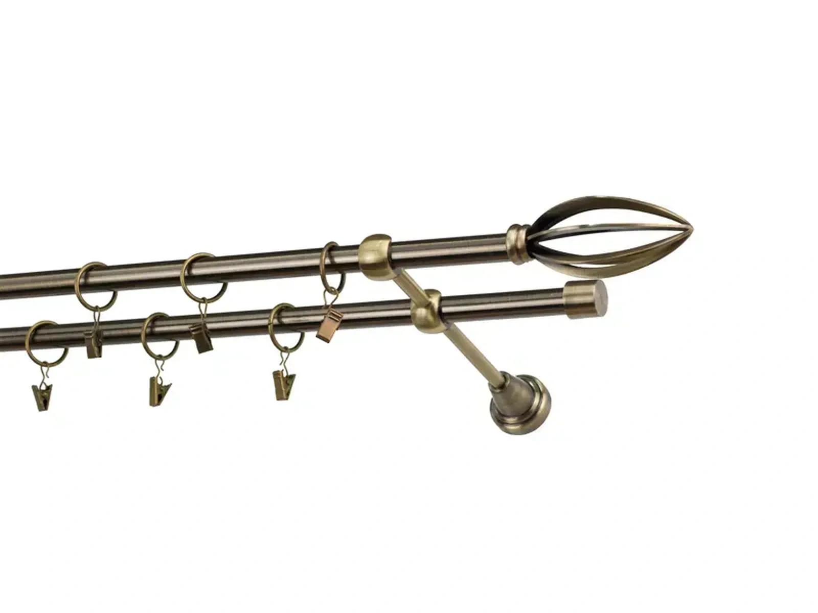 Dvojradová garniža s povrchovou úpravou - odtieň antik (matné zlato). Celokovové garniže s kvalitnou povrchovou úpravou - galvanické pokovovanie. Galvanické pokovovanie zabezpečuje vyššiu povrchovú tvrdosť, zvýšenú dolnosť voči poškriabaniu, hladký povrch. Dodávané sú v kompletoch.