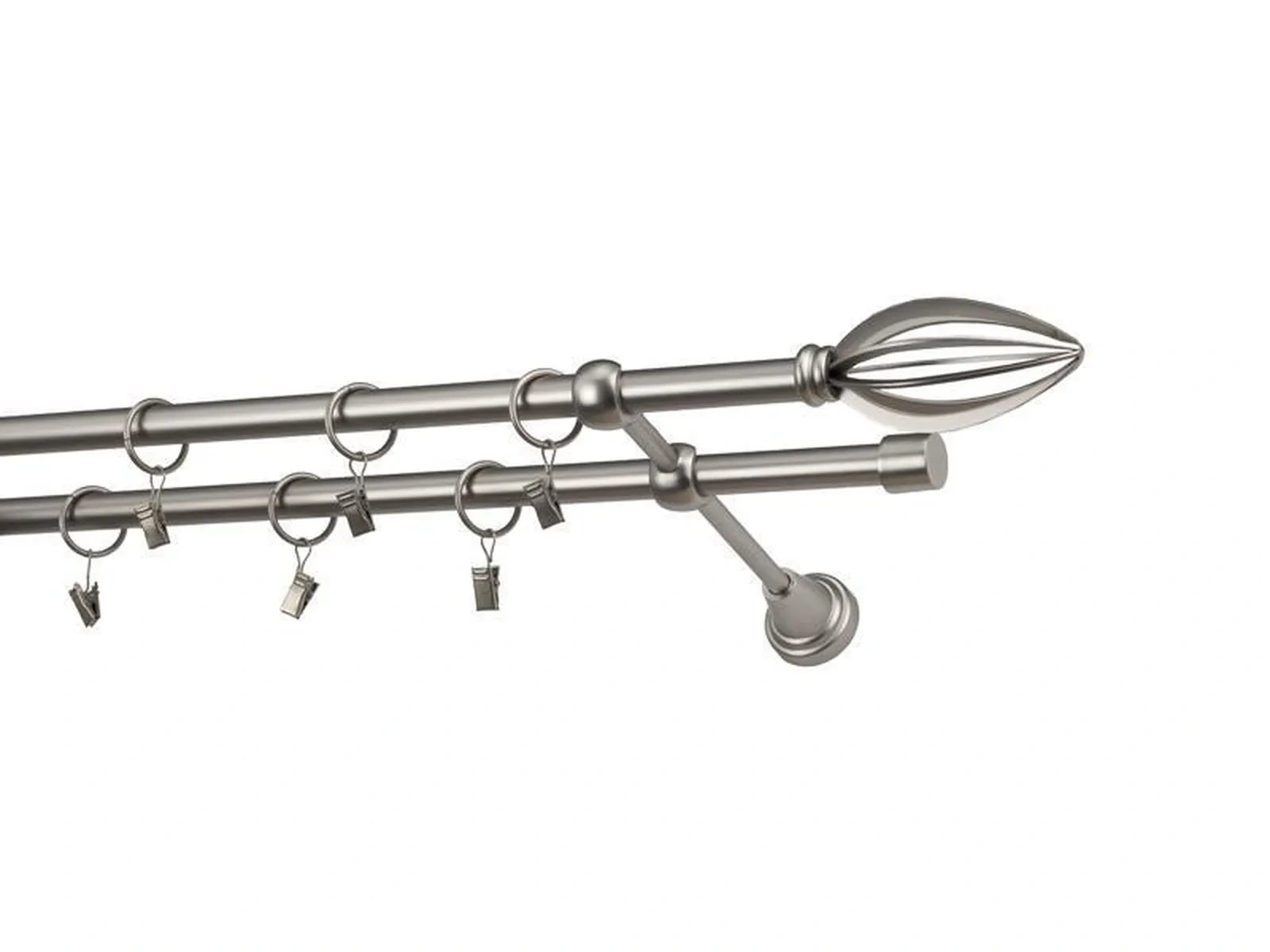 Dvojradová garniža s povrchovou úpravou - odtieň satin-nikel (matné striebro). Celokovové garniže s kvalitnou povrchovou úpravou - galvanické pokovovanie. Galvanické pokovovanie zabezpečuje vyššiu povrchovú tvrdosť, zvýšenú dolnosť voči poškriabaniu, hladký povrch. Dodávané sú v kompletoch.