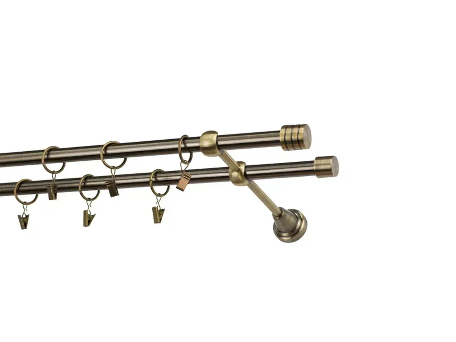 Dvojradová garniža s povrchovou úpravou - odtieň antik (matné zlato). Celokovové garniže s kvalitnou povrchovou úpravou - galvanické pokovovanie. Galvanické pokovovanie zabezpečuje vyššiu povrchovú tvrdosť, zvýšenú dolnosť voči poškriabaniu, hladký povrch. Dodávané sú v kompletoch.