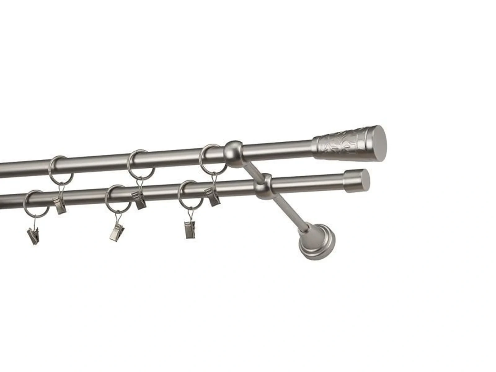 Dvojradová garniža s povrchovou úpravou - odtieň satin-nikel (matné striebro). Celokovové garniže s kvalitnou povrchovou úpravou - galvanické pokovovanie. Galvanické pokovovanie zabezpečuje vyššiu povrchovú tvrdosť, zvýšenú dolnosť voči poškriabaniu, hladký povrch. Dodávané sú v kompletoch.