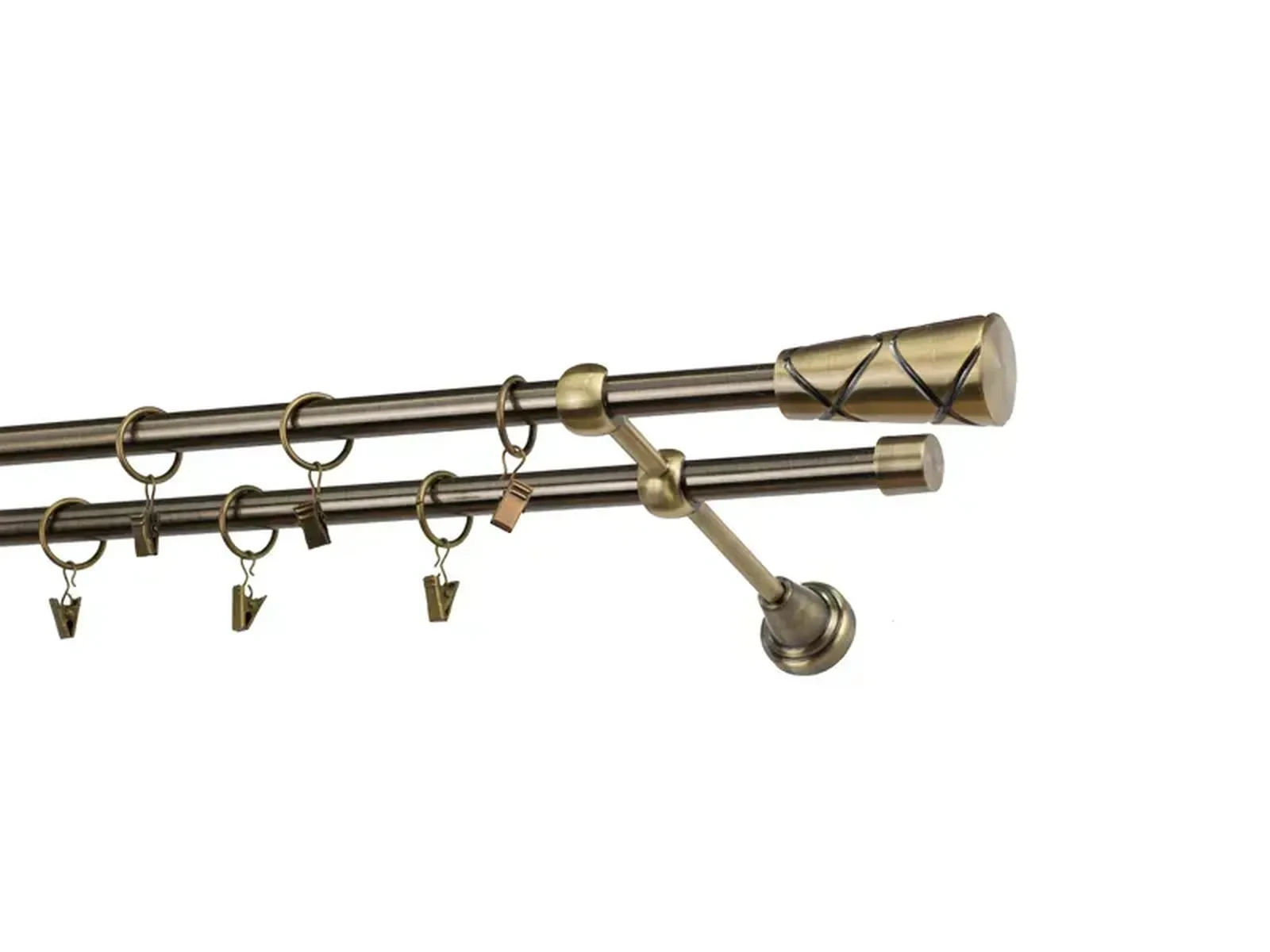 Dvojradová garniža s povrchovou úpravou - odtieň antik (matné zlato). Celokovové garniže s kvalitnou povrchovou úpravou - galvanické pokovovanie. Galvanické pokovovanie zabezpečuje vyššiu povrchovú tvrdosť, zvýšenú dolnosť voči poškriabaniu, hladký povrch. Dodávané sú v kompletoch.