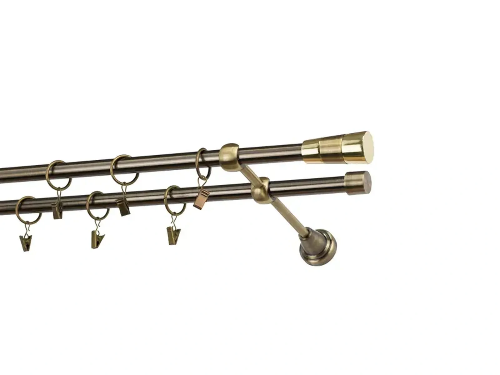 Dvojradová garniža s povrchovou úpravou - odtieň antik (matné zlato). Celokovové garniže s kvalitnou povrchovou úpravou - galvanické pokovovanie. Galvanické pokovovanie zabezpečuje vyššiu povrchovú tvrdosť, zvýšenú dolnosť voči poškriabaniu, hladký povrch. Dodávané sú v kompletoch.