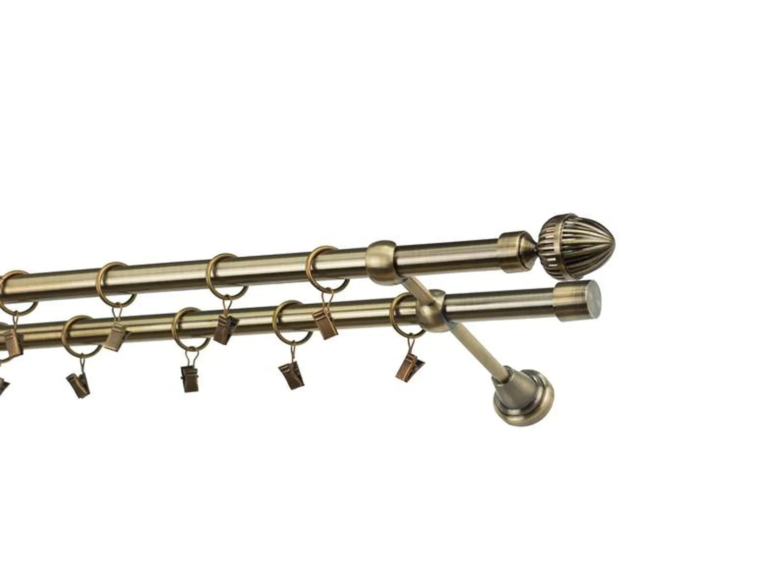 Dĺžka 1400 mm - tyč 19mm - 1400mm - 2ks, držiak dvojitý - 2ks, koncovka - 2ks, koncovka zadná(PULLO) - 2ks, krúžok so štipcom - 26ks (pri výbere parametra príslušenstvo s krúžkami so štipcom), skrutky a hmoždinky na montáž
