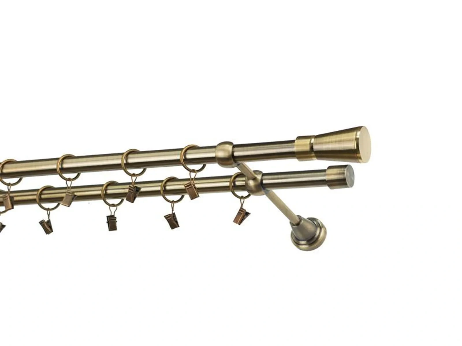 Dvojradová garniža s povrchovou úpravou - odtieň antik (matné zlato). Celokovové garniže s kvalitnou povrchovou úpravou - galvanické pokovovanie. Galvanické pokovovanie zabezpečuje vyššiu povrchovú tvrdosť, zvýšenú dolnosť voči poškriabaniu, hladký povrch. Dodávané sú v kompletoch.