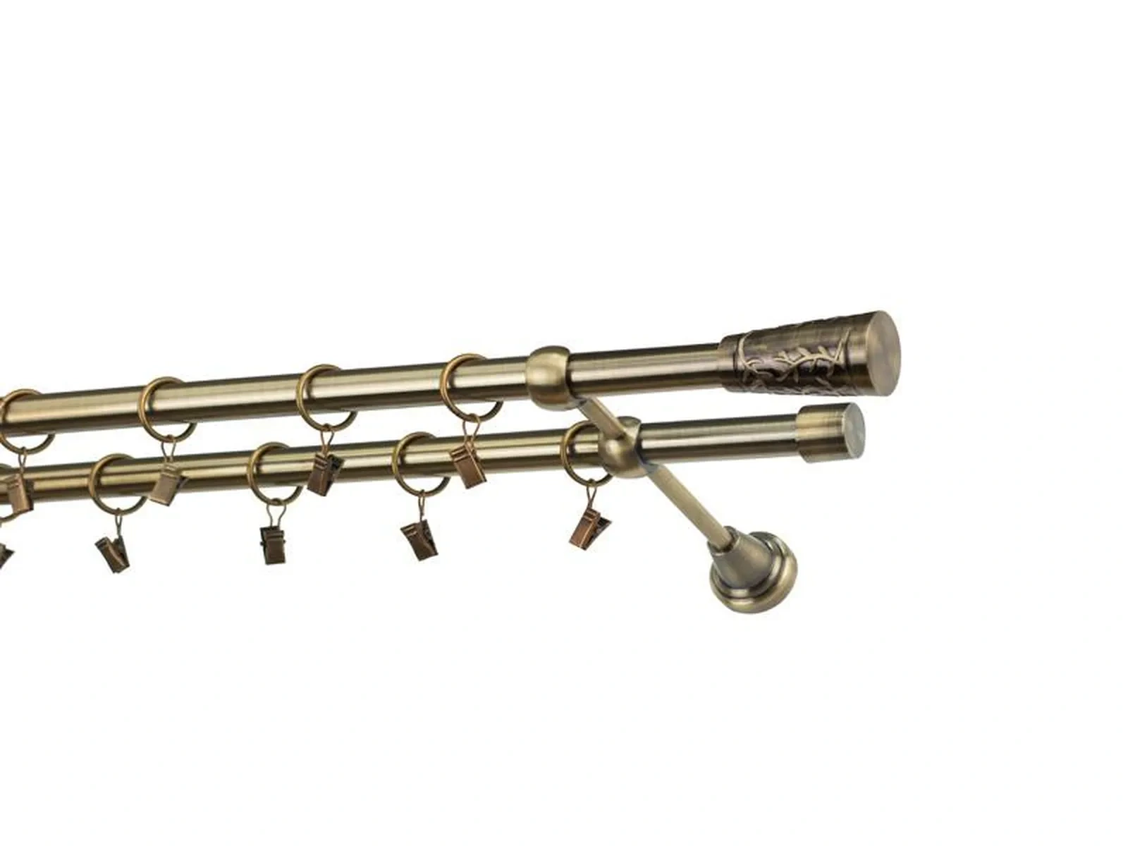 Dvojradová garniža s povrchovou úpravou - odtieň antik (matné zlato). Celokovové garniže s kvalitnou povrchovou úpravou - galvanické pokovovanie. Galvanické pokovovanie zabezpečuje vyššiu povrchovú tvrdosť, zvýšenú dolnosť voči poškriabaniu, hladký povrch. Dodávané sú v kompletoch.