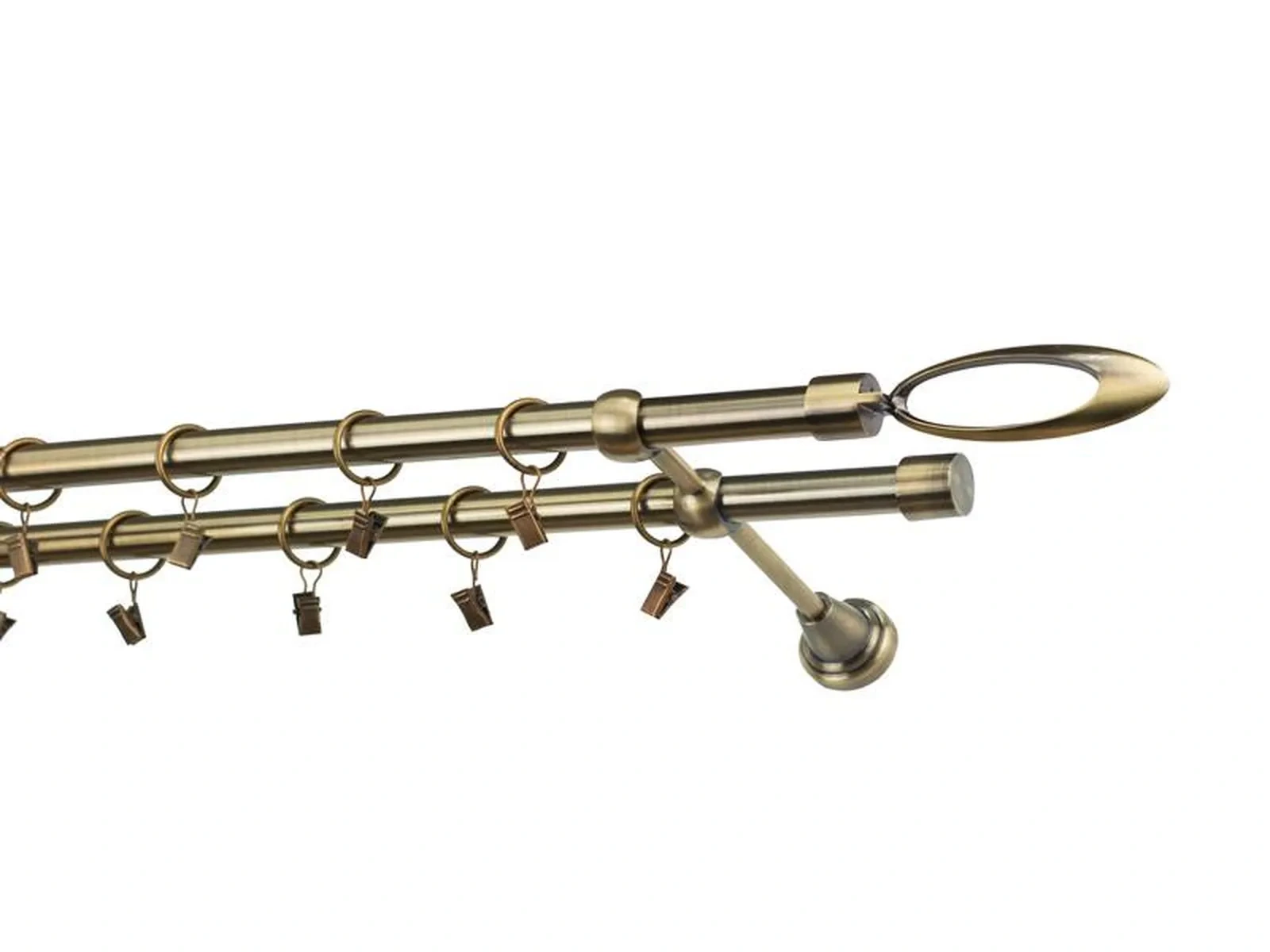 Dĺžka 1600 mm - tyč 19mm - 1600mm - 2ks, držiak dvojitý - 2ks, koncovka - 2ks, koncovka zadná(PULLO) - 2ks, krúžok so štipcom - 30ks (pri výbere parametra príslušenstvo s krúžkami so štipcom), skrutky a hmoždinky na montáž