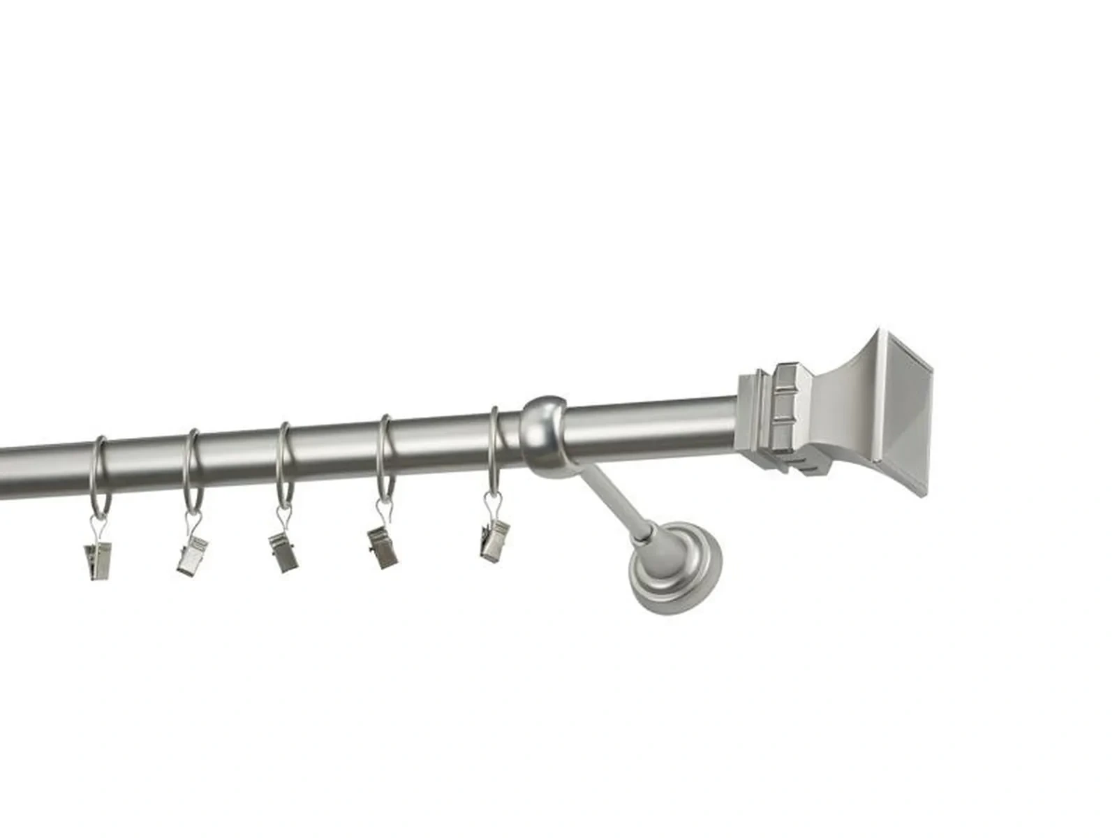 Dĺžka 1600 mm - tyč 25mm - 1600mm - 1ks, držiak - 2ks, koncovka - 2ks, krúžok so štipcom - 15ks (pri výbere parametra príslušenstvo s krúžkami so štipcom), skrutky a hmoždinky na montáž