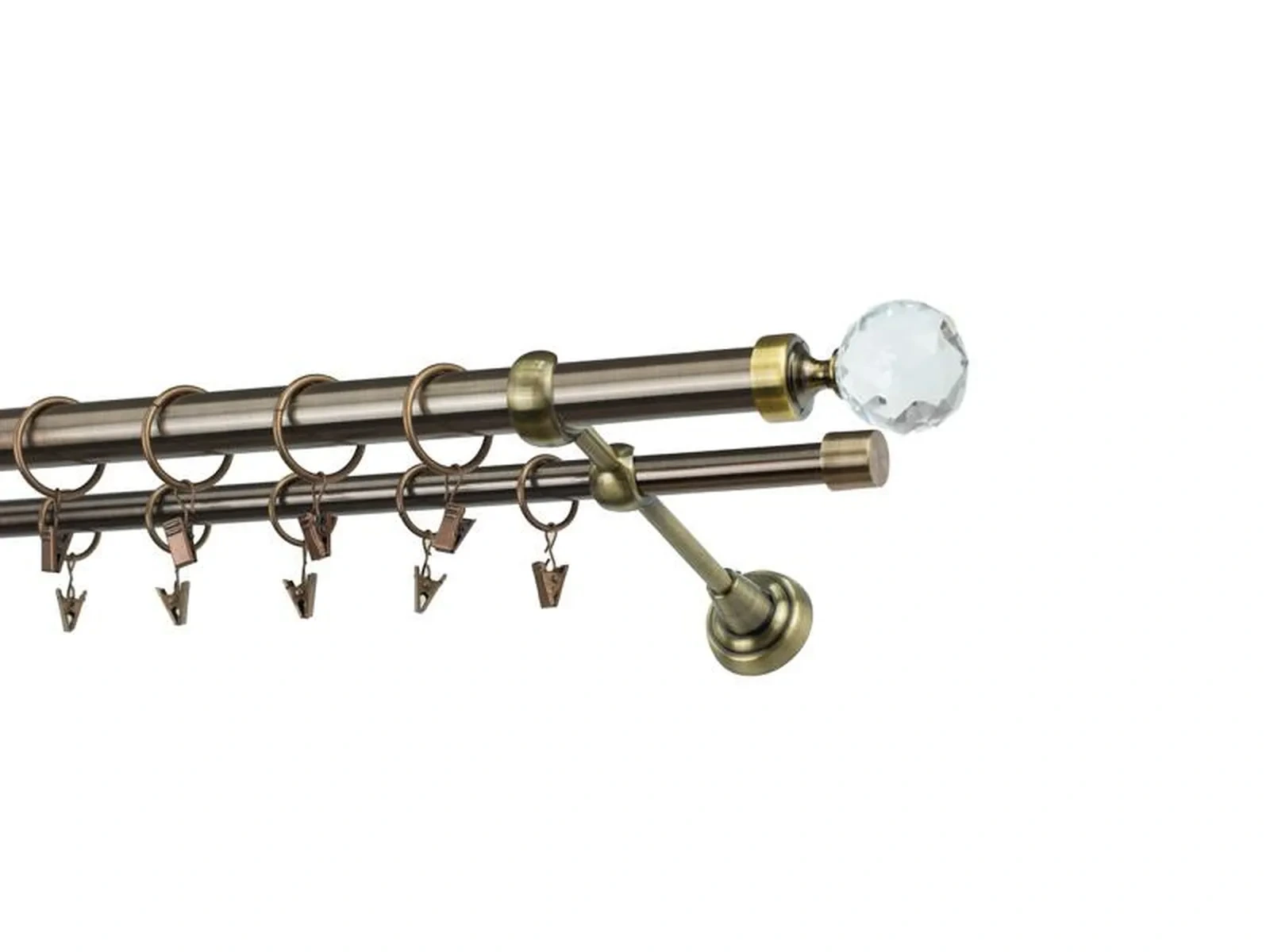 Dvojradová garniža s povrchovou úpravou - odtieň antik (matné zlato). Celokovové garniže s kvalitnou povrchovou úpravou - galvanické pokovovanie. Galvanické pokovovanie zabezpečuje vyššiu povrchovú tvrdosť, zvýšenú dolnosť voči poškriabaniu, hladký povrch. Dodávané sú v kompletoch.