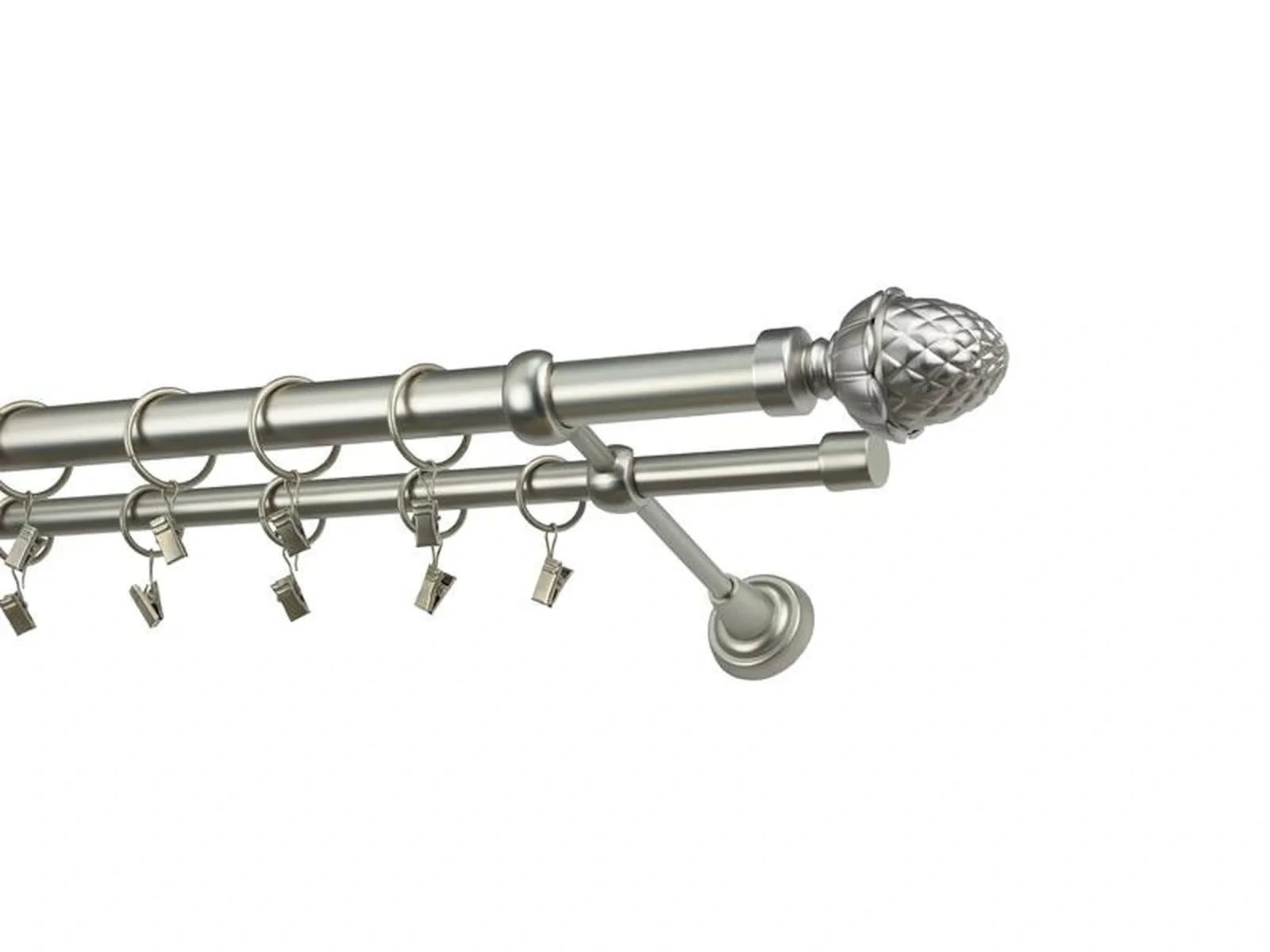 Dvojradová garniža s povrchovou úpravou - odtieň satin-nikel (matné striebro). Celokovové garniže s kvalitnou povrchovou úpravou - galvanické pokovovanie. Galvanické pokovovanie zabezpečuje vyššiu povrchovú tvrdosť, zvýšenú dolnosť voči poškriabaniu, hladký povrch. Dodávané sú v kompletoch.