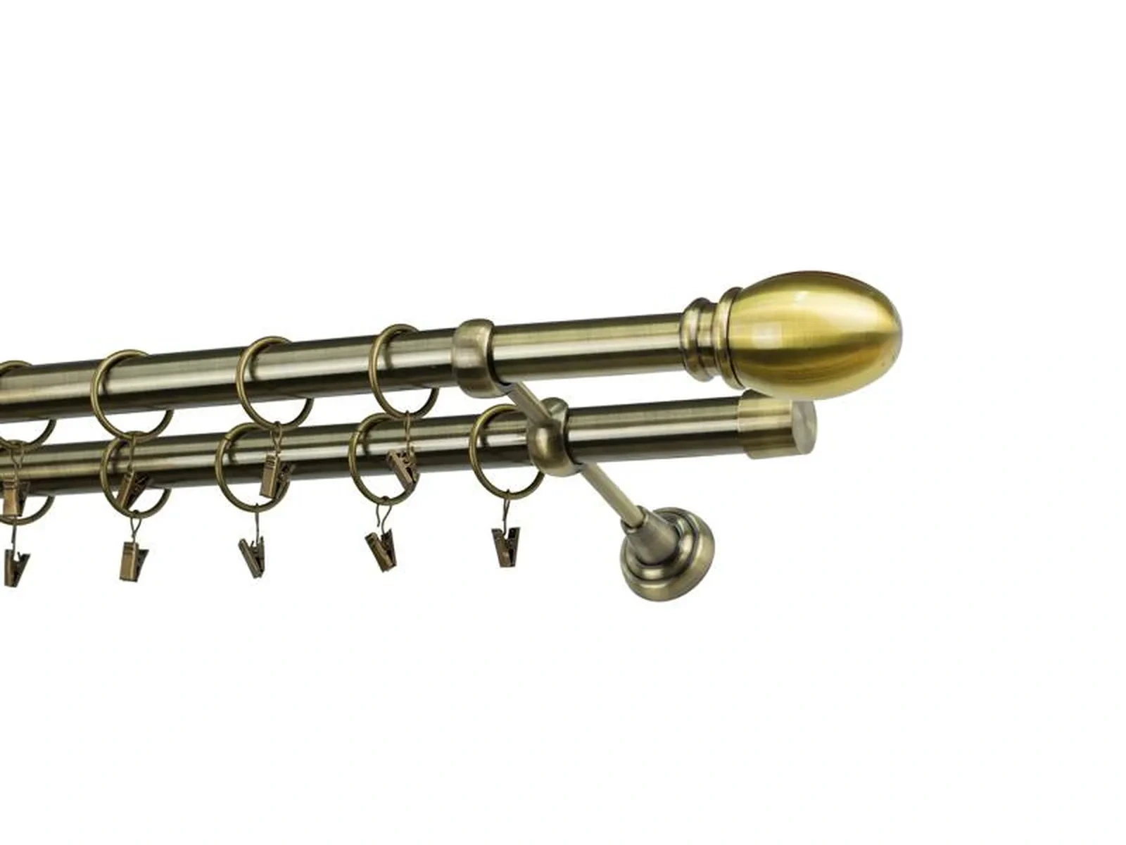 Dĺžka 1200 mm - tyč 25mm - 1200mm - 2ks, držiak dvojitý - 2ks, koncovka - 2ks, koncovka zadná(PULLO) - 2ks, krúžok so štipcom - 22ks (pri výbere parametra príslušenstvo s krúžkami so štipcom), skrutky a hmoždinky na montáž