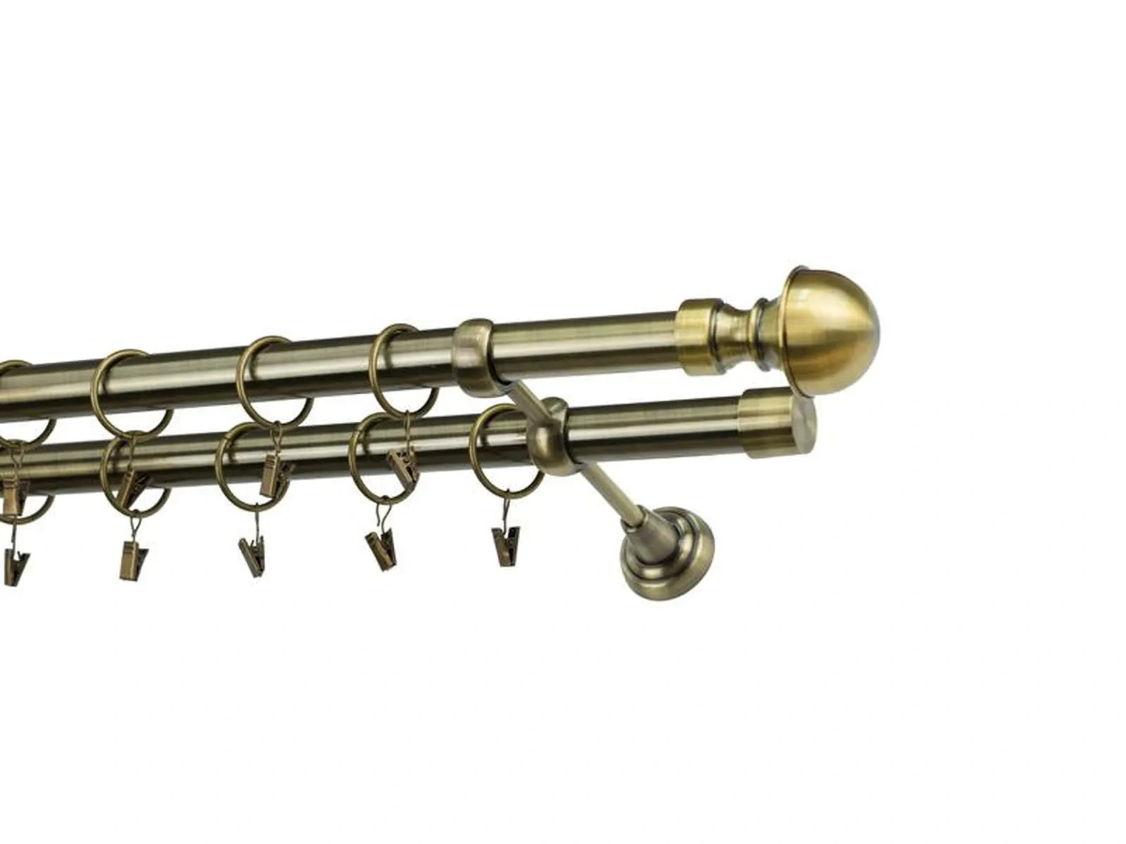 Dĺžka 1200 mm - tyč 25mm - 1200mm - 2ks, držiak dvojitý - 2ks, koncovka - 2ks, koncovka zadná(PULLO) - 2ks, krúžok so štipcom - 22ks (pri výbere parametra príslušenstvo s krúžkami so štipcom), skrutky a hmoždinky na montáž