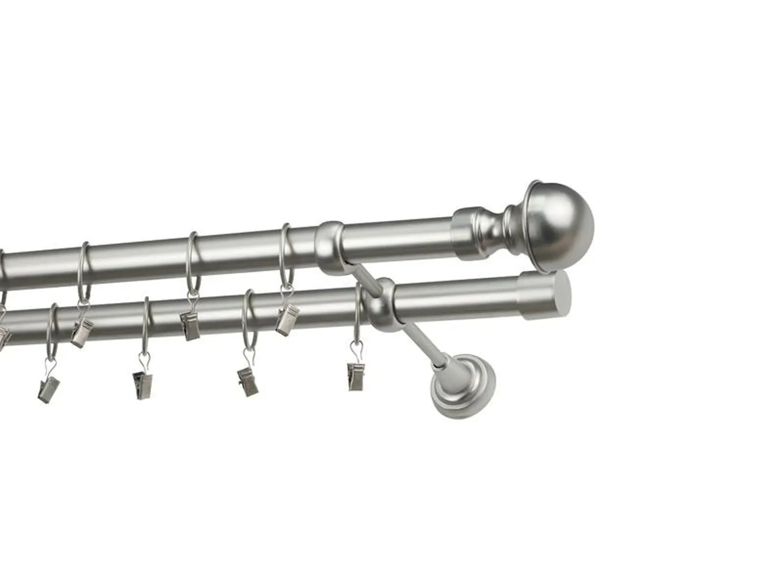 Dĺžka 1600 mm - tyč 25mm - 1600mm - 2ks, držiak dvojitý - 2ks, koncovka - 2ks, koncovka zadná(PULLO) - 2ks, krúžok so štipcom - 30ks (pri výbere parametra príslušenstvo s krúžkami so štipcom), skrutky a hmoždinky na montáž