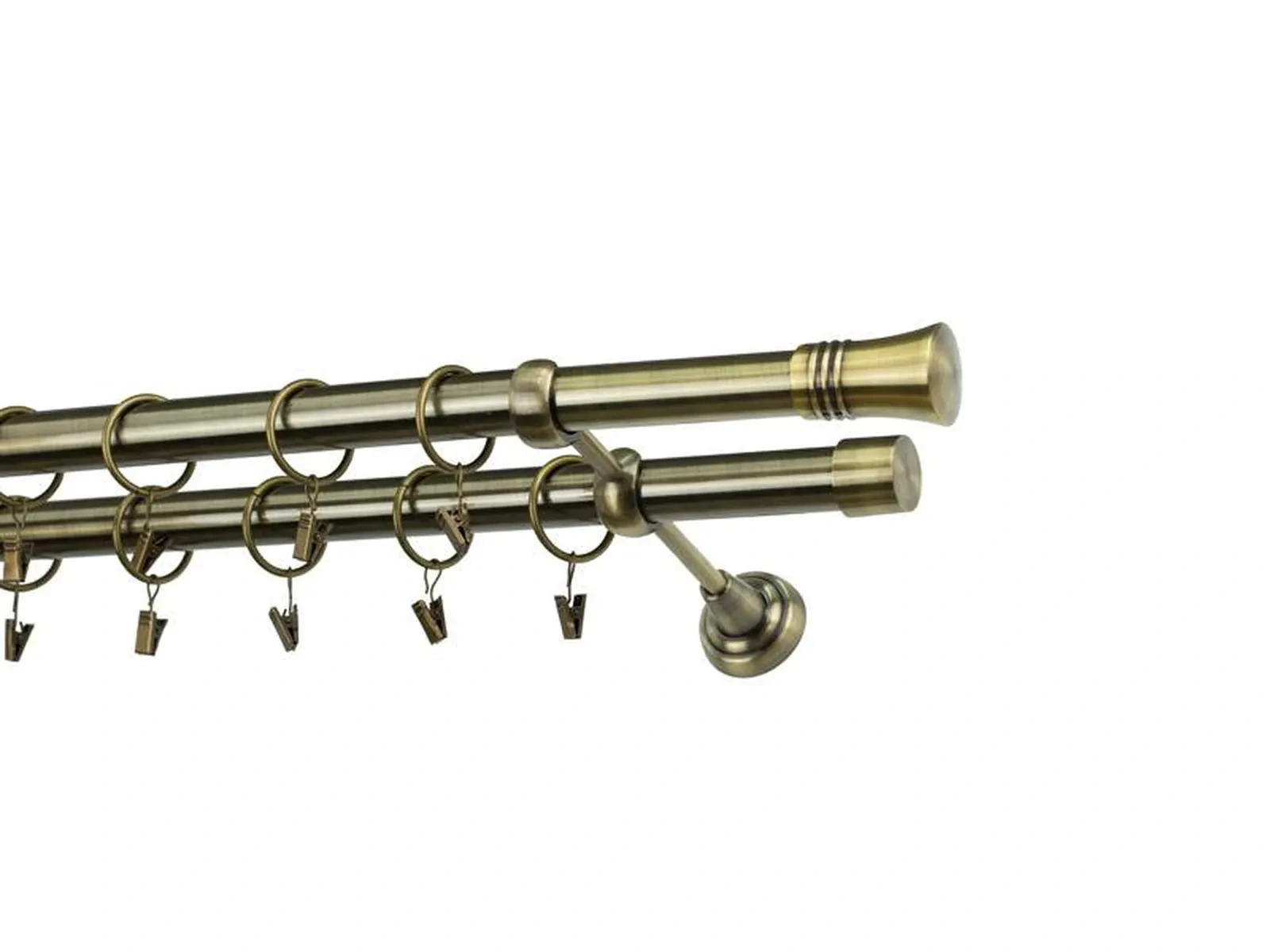 Dvojradová garniža s povrchovou úpravou - odtieň antik (matné zlato). Celokovové garniže s kvalitnou povrchovou úpravou - galvanické pokovovanie. Galvanické pokovovanie zabezpečuje vyššiu povrchovú tvrdosť, zvýšenú dolnosť voči poškriabaniu, hladký povrch. Dodávané sú v kompletoch.
