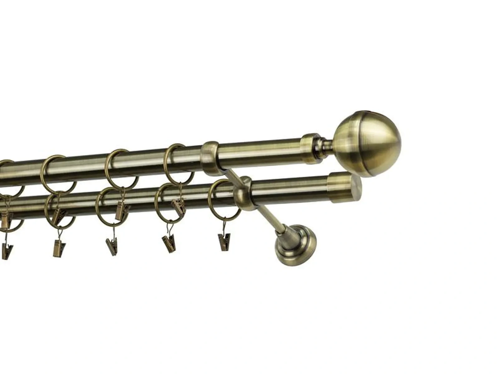 Dĺžka 1600 mm - tyč 25mm - 1600mm - 2ks, držiak dvojitý - 2ks, koncovka - 2ks, koncovka zadná(PULLO) - 2ks, krúžok so štipcom - 30ks (pri výbere parametra príslušenstvo s krúžkami so štipcom), skrutky a hmoždinky na montáž