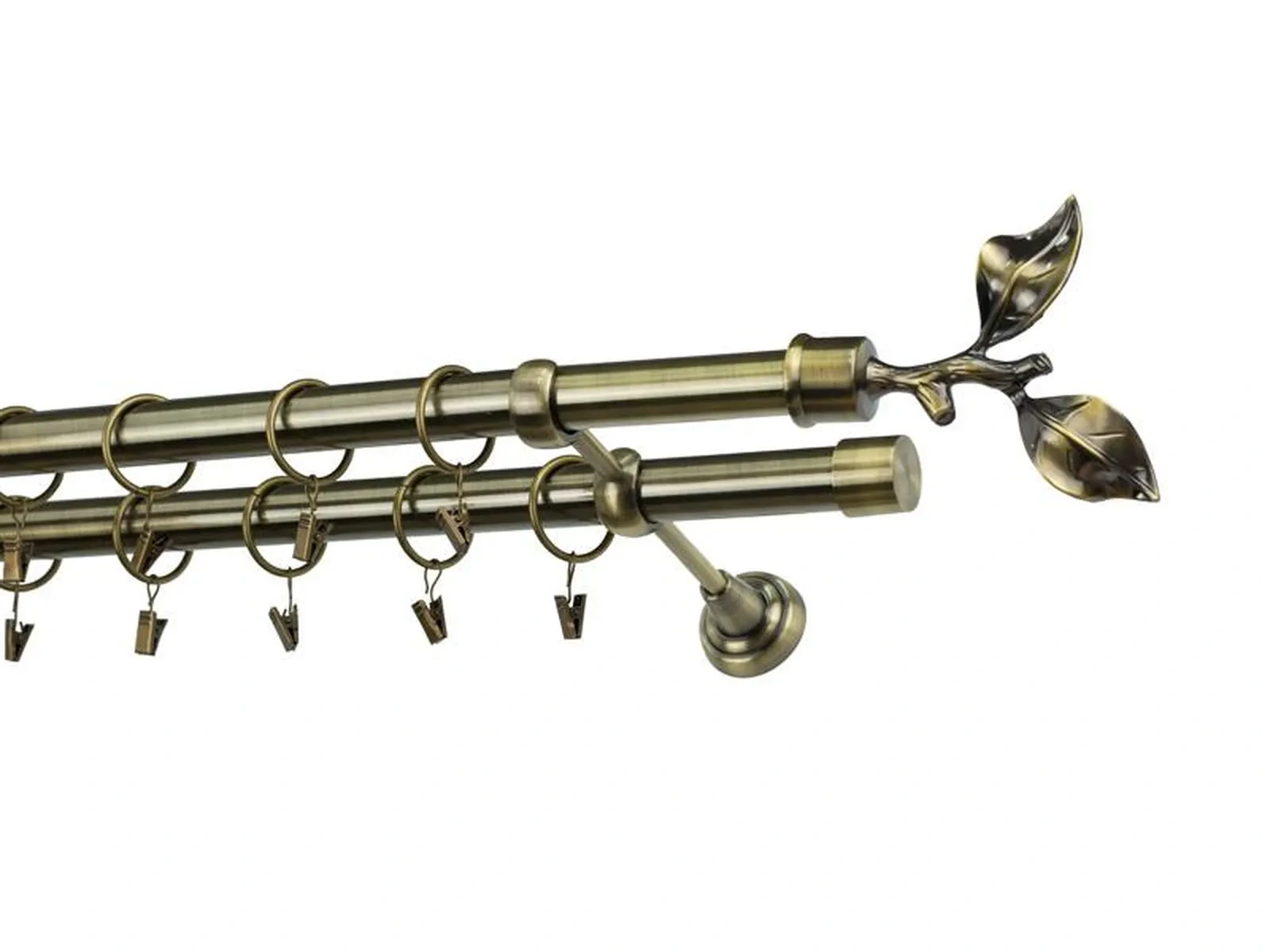 Dvojradová garniža s povrchovou úpravou - odtieň antik (matné zlato). Celokovové garniže s kvalitnou povrchovou úpravou - galvanické pokovovanie. Galvanické pokovovanie zabezpečuje vyššiu povrchovú tvrdosť, zvýšenú dolnosť voči poškriabaniu, hladký povrch. Dodávané sú v kompletoch.