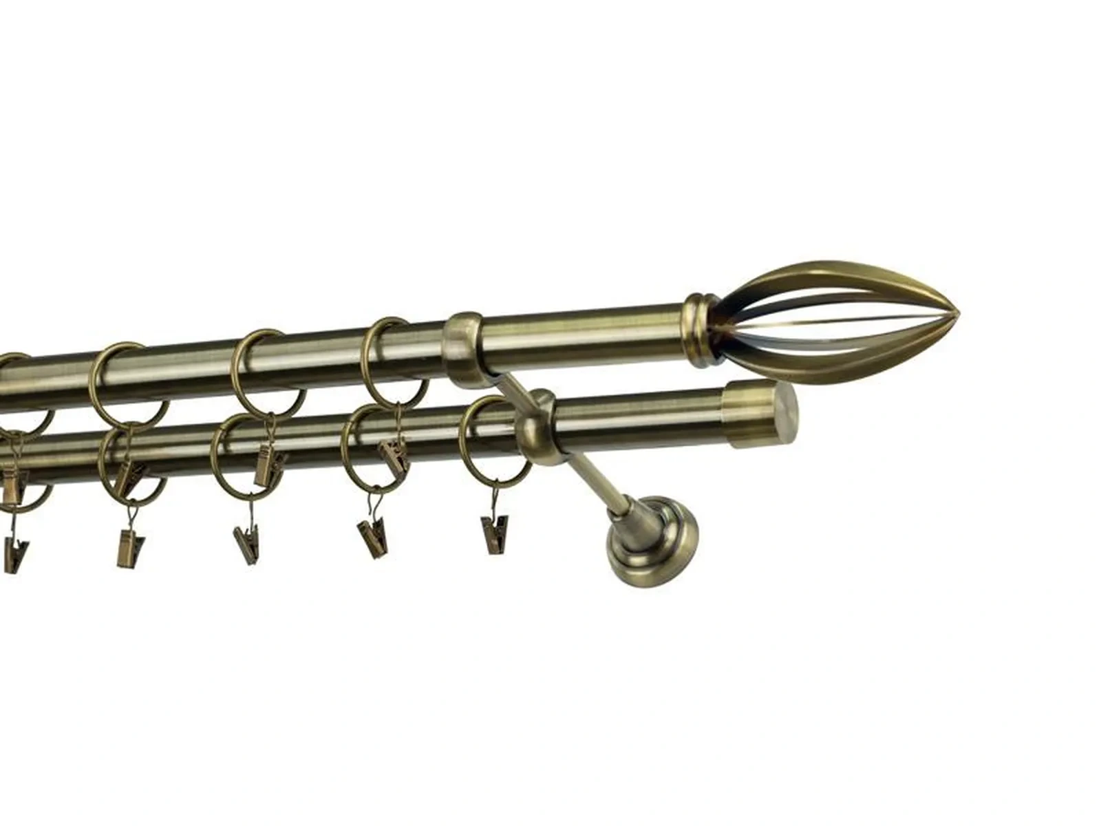 Dvojradová garniža s povrchovou úpravou - odtieň antik (matné zlato). Celokovové garniže s kvalitnou povrchovou úpravou - galvanické pokovovanie. Galvanické pokovovanie zabezpečuje vyššiu povrchovú tvrdosť, zvýšenú dolnosť voči poškriabaniu, hladký povrch. Dodávané sú v kompletoch.