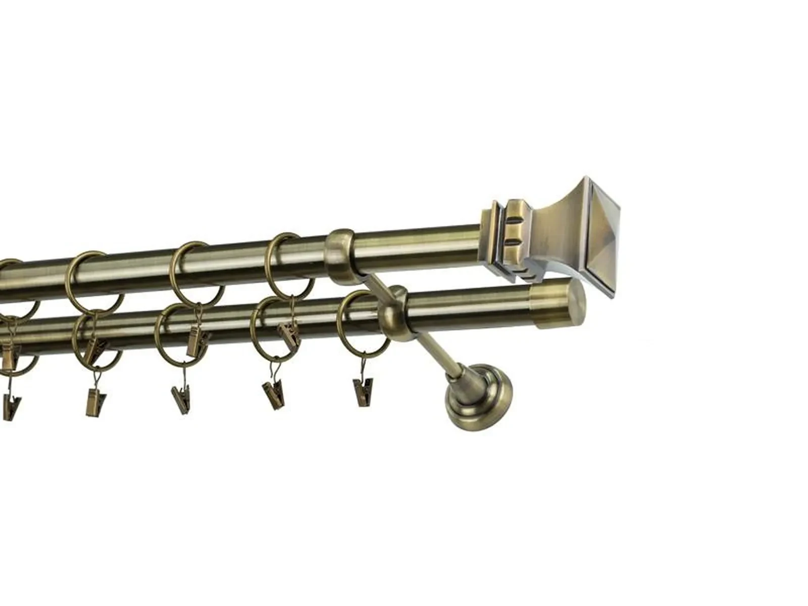 Dvojradová garniža s povrchovou úpravou - odtieň antik (matné zlato). Celokovové garniže s kvalitnou povrchovou úpravou - galvanické pokovovanie. Galvanické pokovovanie zabezpečuje vyššiu povrchovú tvrdosť, zvýšenú dolnosť voči poškriabaniu, hladký povrch. Dodávané sú v kompletoch.