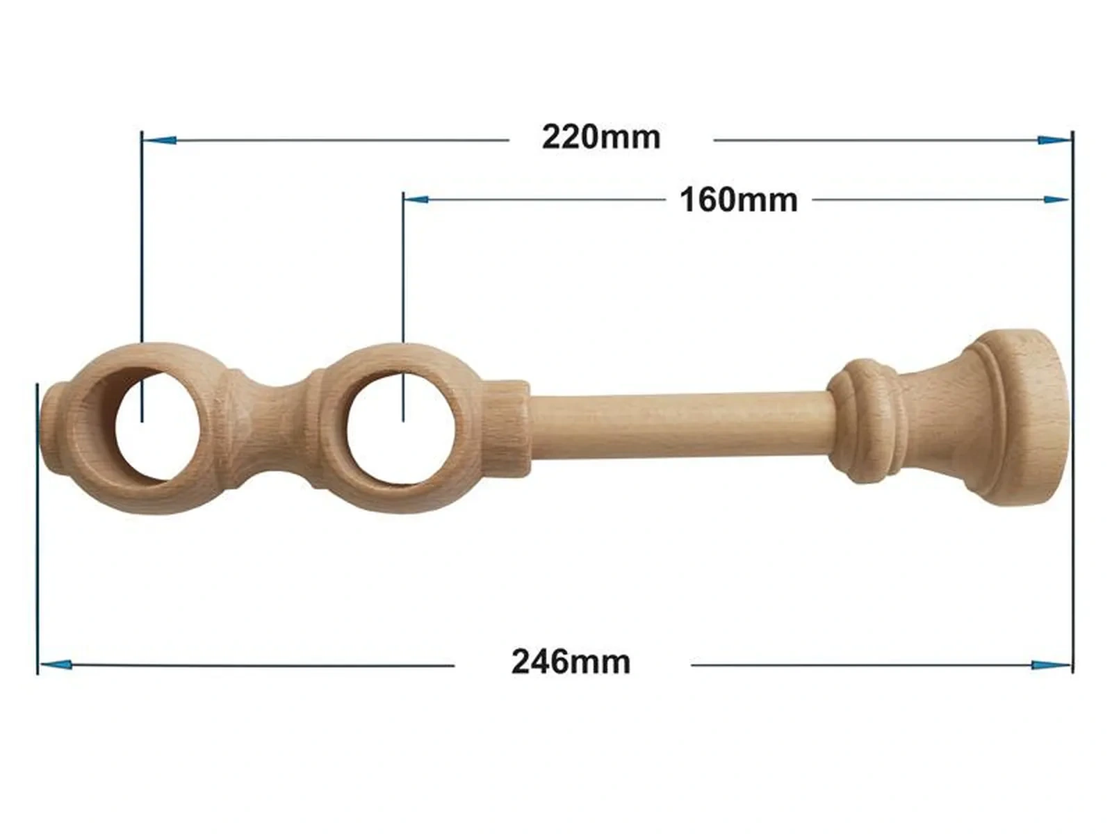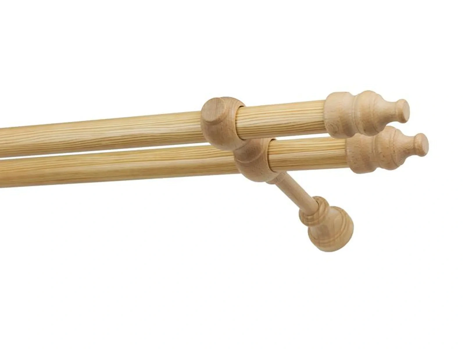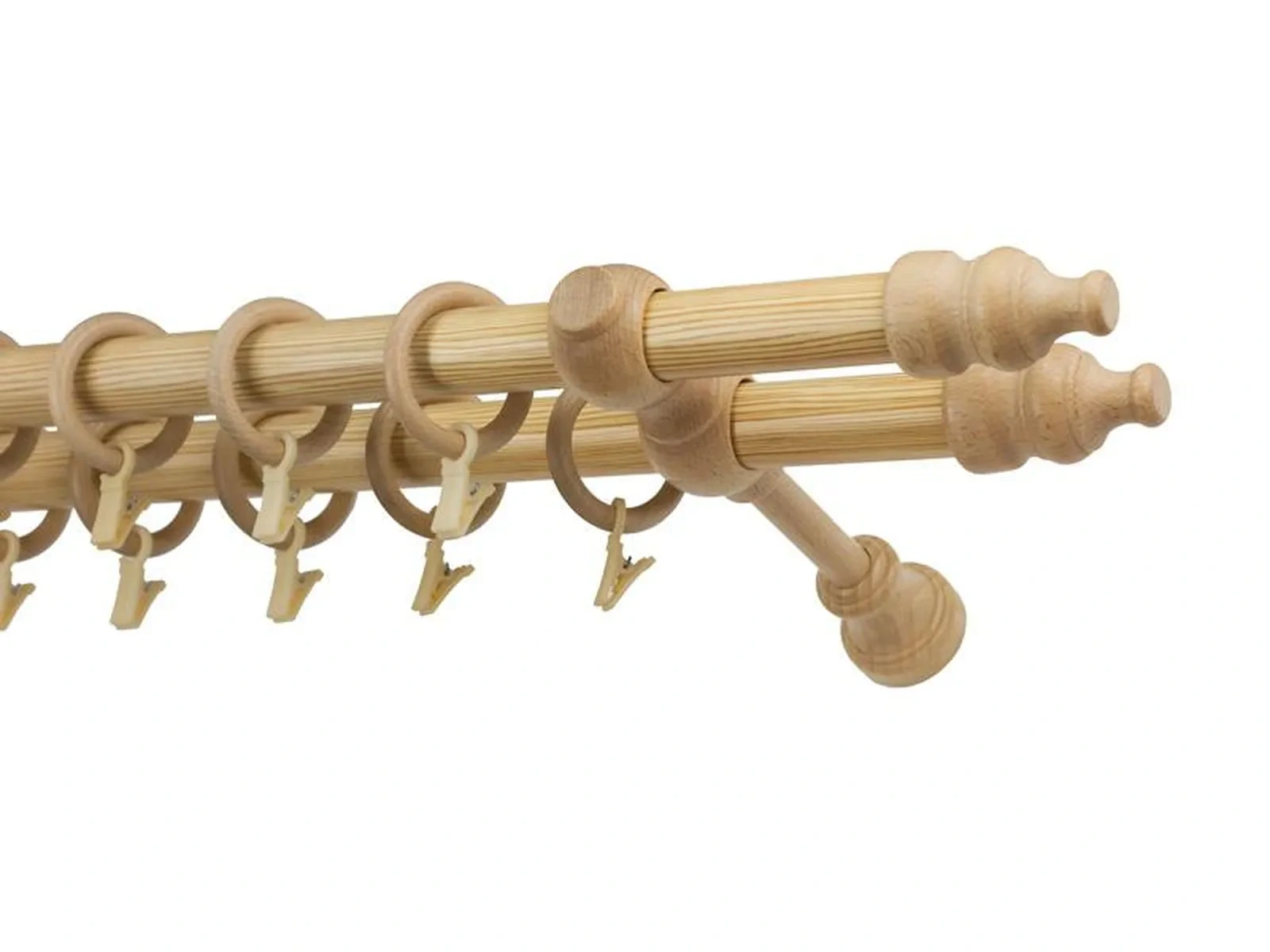 Koncovky a držiaky a krúžky sú drevené. Tyč je drevená (vyrábaná technológiou ako europrofily pre okna - čo eliminuje ohýbanie vplyvom tepla) a je potiahnutá odolnou drevoimitačnou fóliou. Dodávané sú v kompletoch.
